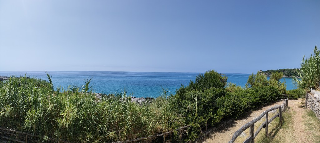 Eccoci arrivati al primo giorno, davanti ai miei occhi Palinuro: promontorio roccioso, collocato al centro del Parco Nazionale del Cilento, proteso sul mare e incastonato nel verde delle colline circostanti, illuminato di notte dal secondo faro più alto d’Italia. Possiede spiagge ampie e sabbiose e mare cristallino ma anche baie accessibili solo via mare che sono dei veri e propri gioielli naturali con acque turchesi.